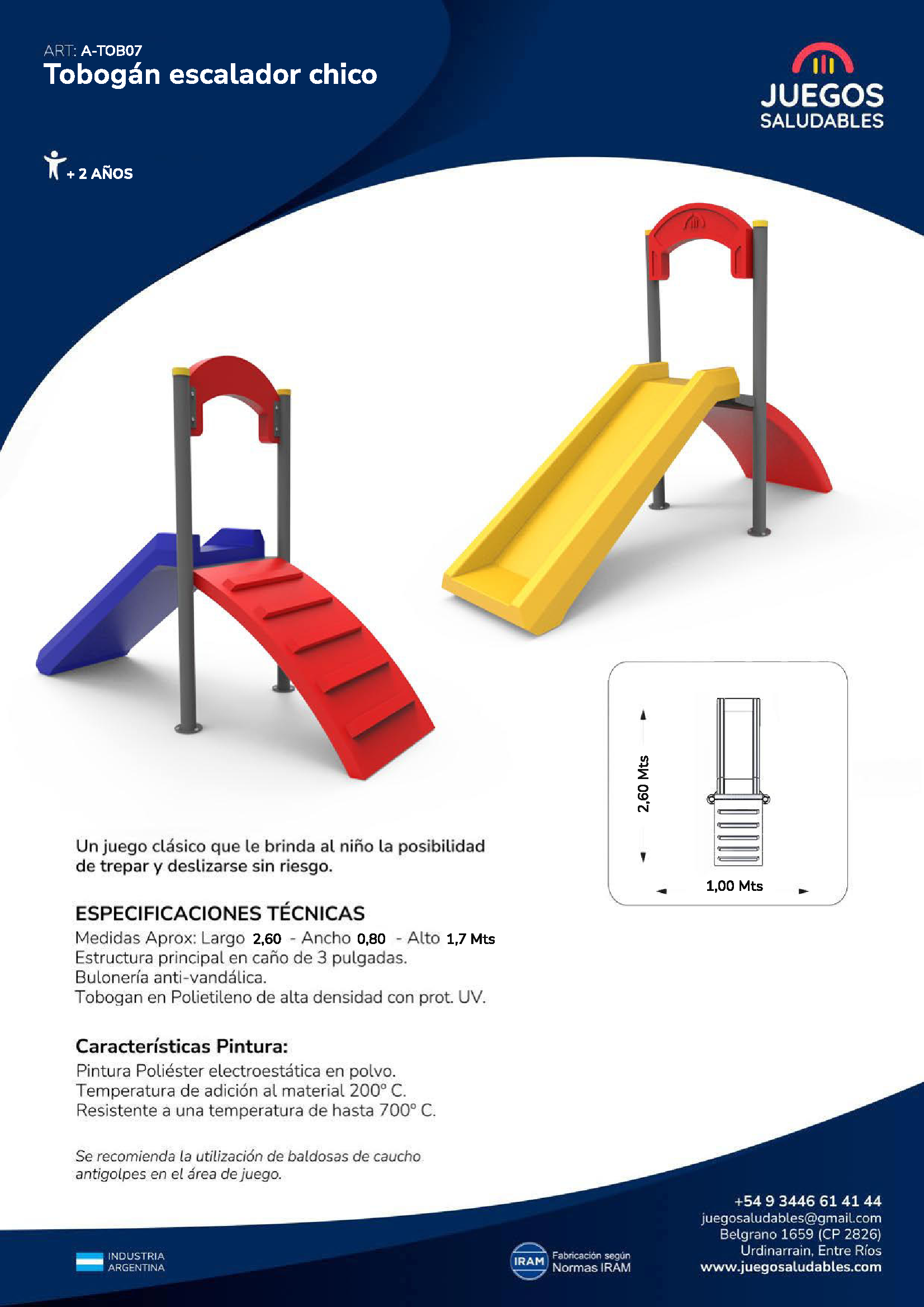 En Juegos Saludables, somos líderes en la fabricación de juegos infantiles para plazas, parques, escuelas y jardines. Todos nuestros productos están construidos con la mejor materia prima y bajo las normas IRAM, garantizando seguridad, durabilidad y un uso intensivo. Ofrecemos atención personalizada a municipios, escuelas y jardines, creando entornos inclusivos y saludables que fomentan la actividad física y el desarrollo de los niños, desde los más pequeños hasta los más grandes